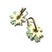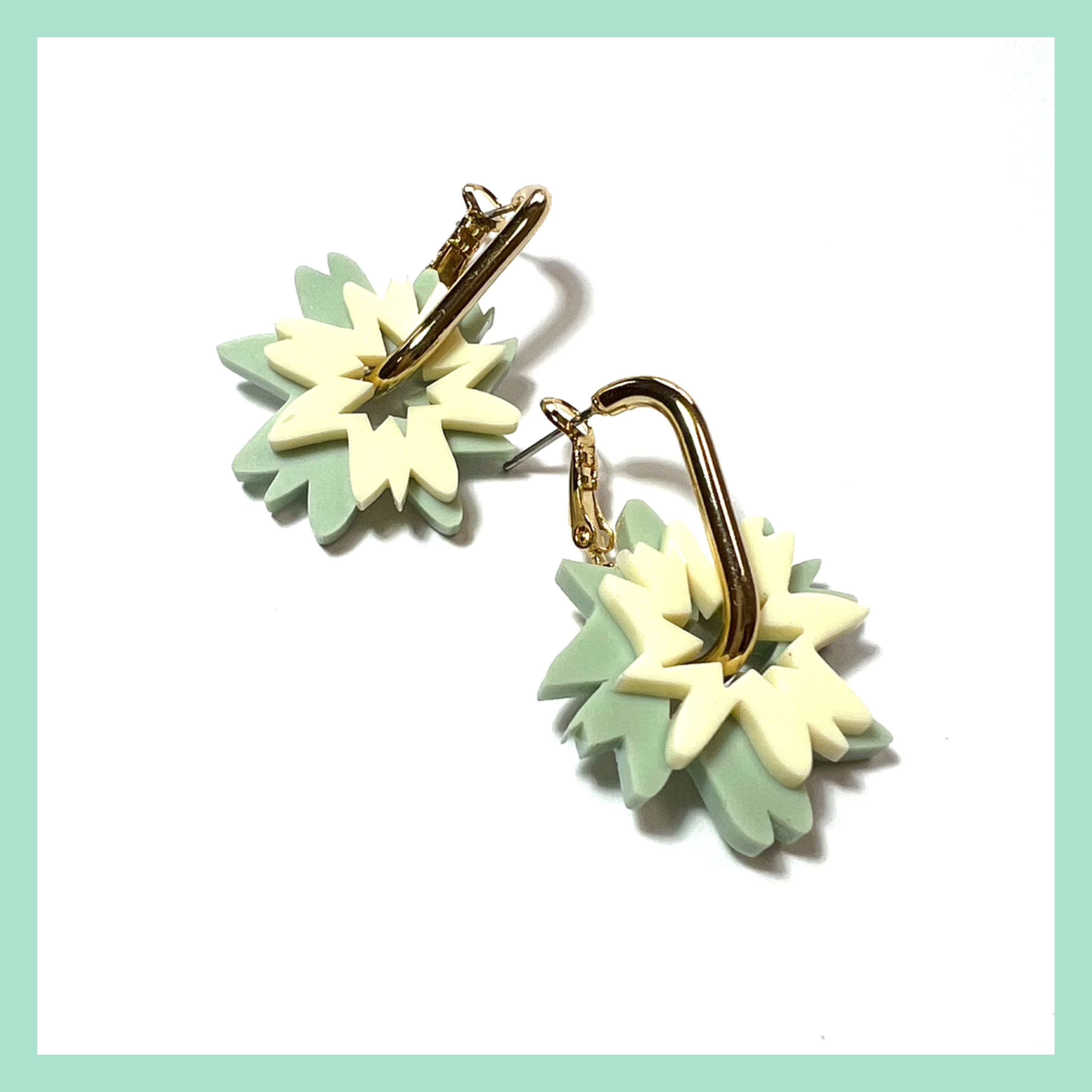 大小色違いの花が配色で入ったフラワーモチーフピアスです。