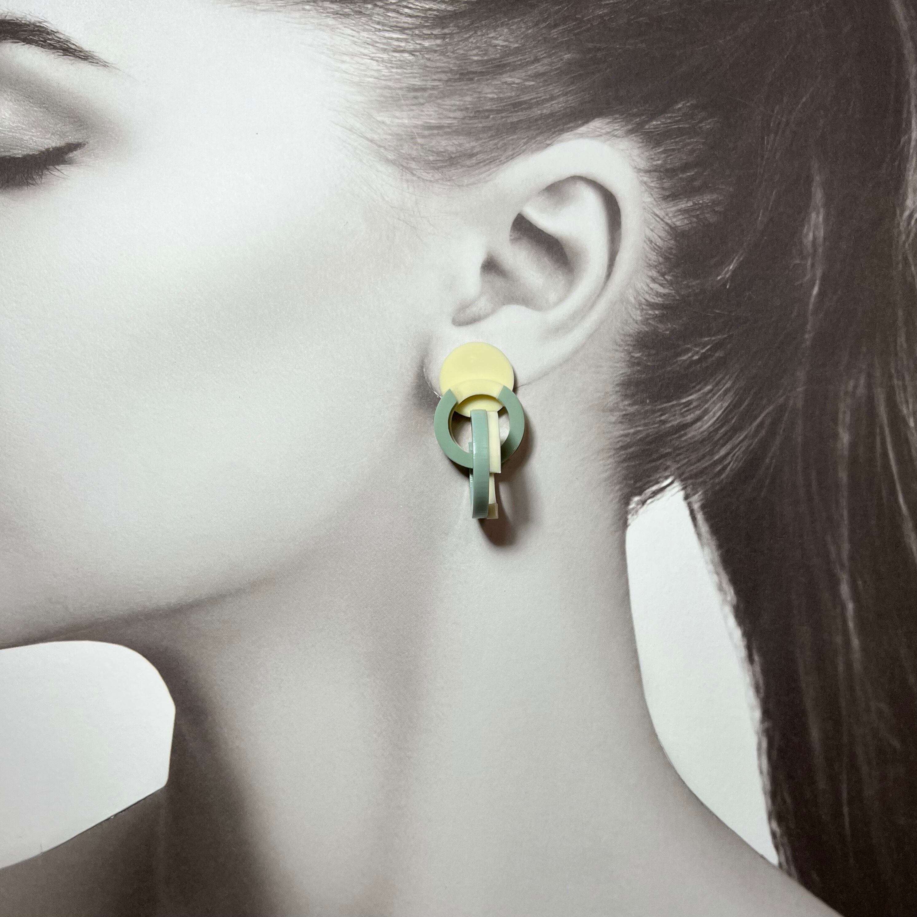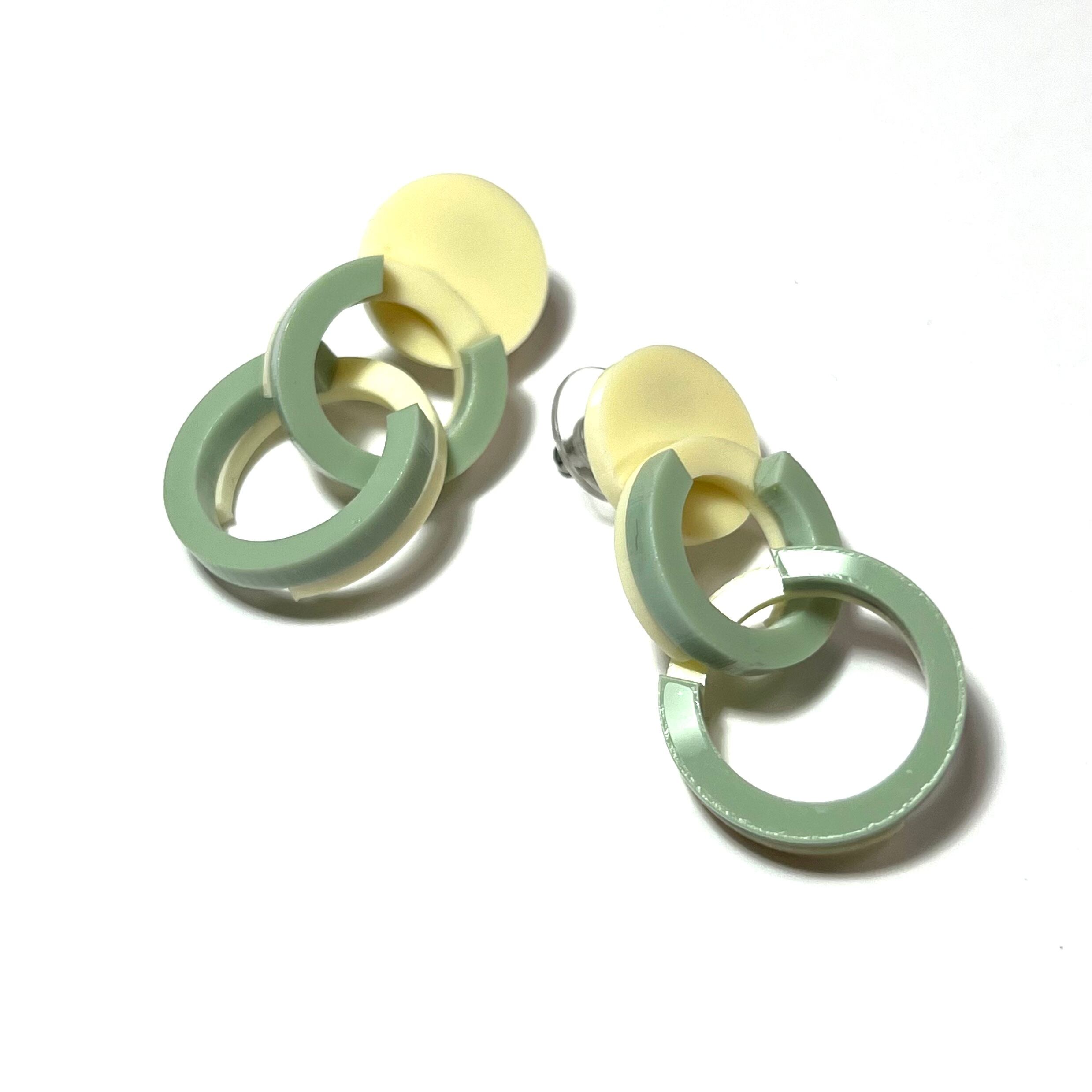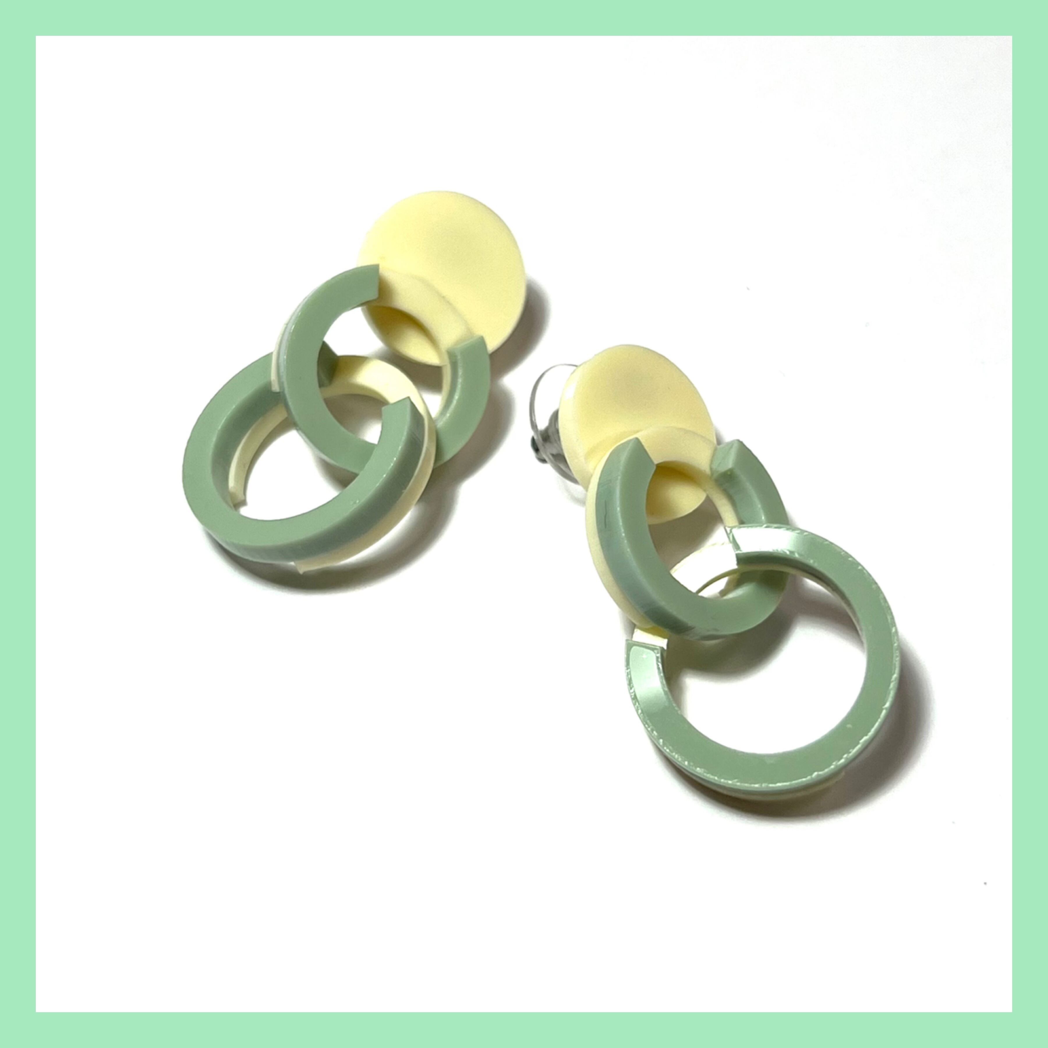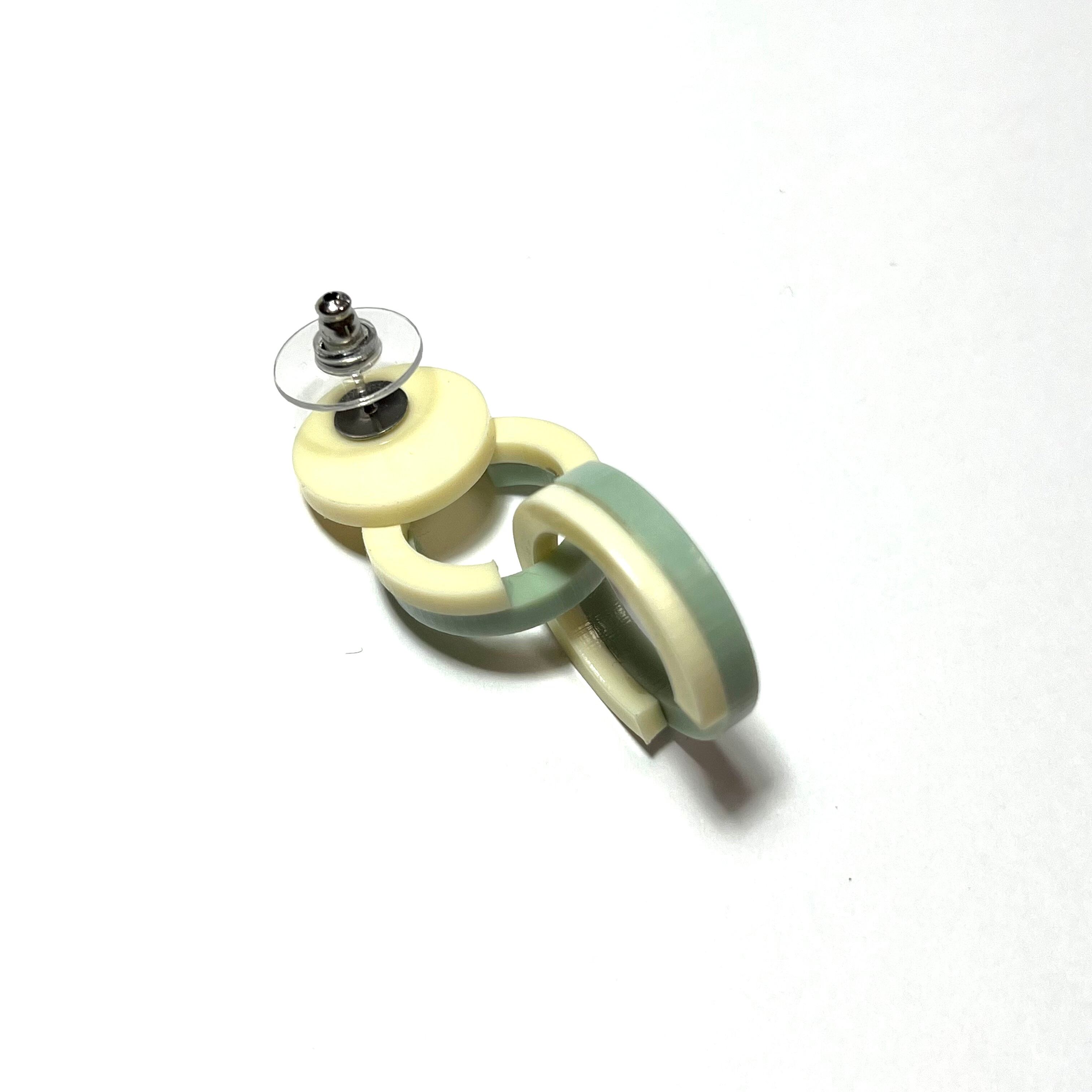 クリーム、スモーキーグリーン配色のスタッズピアスです。