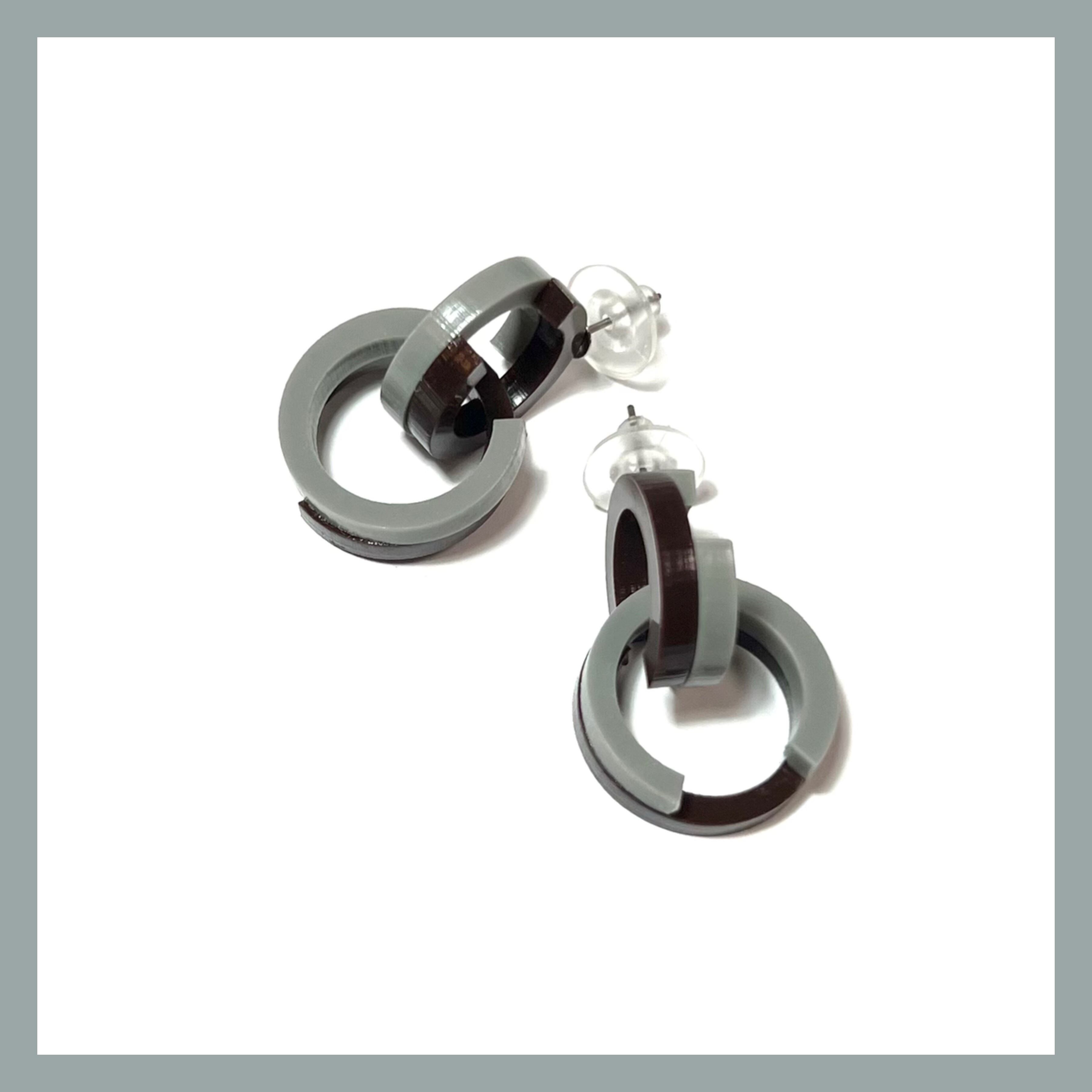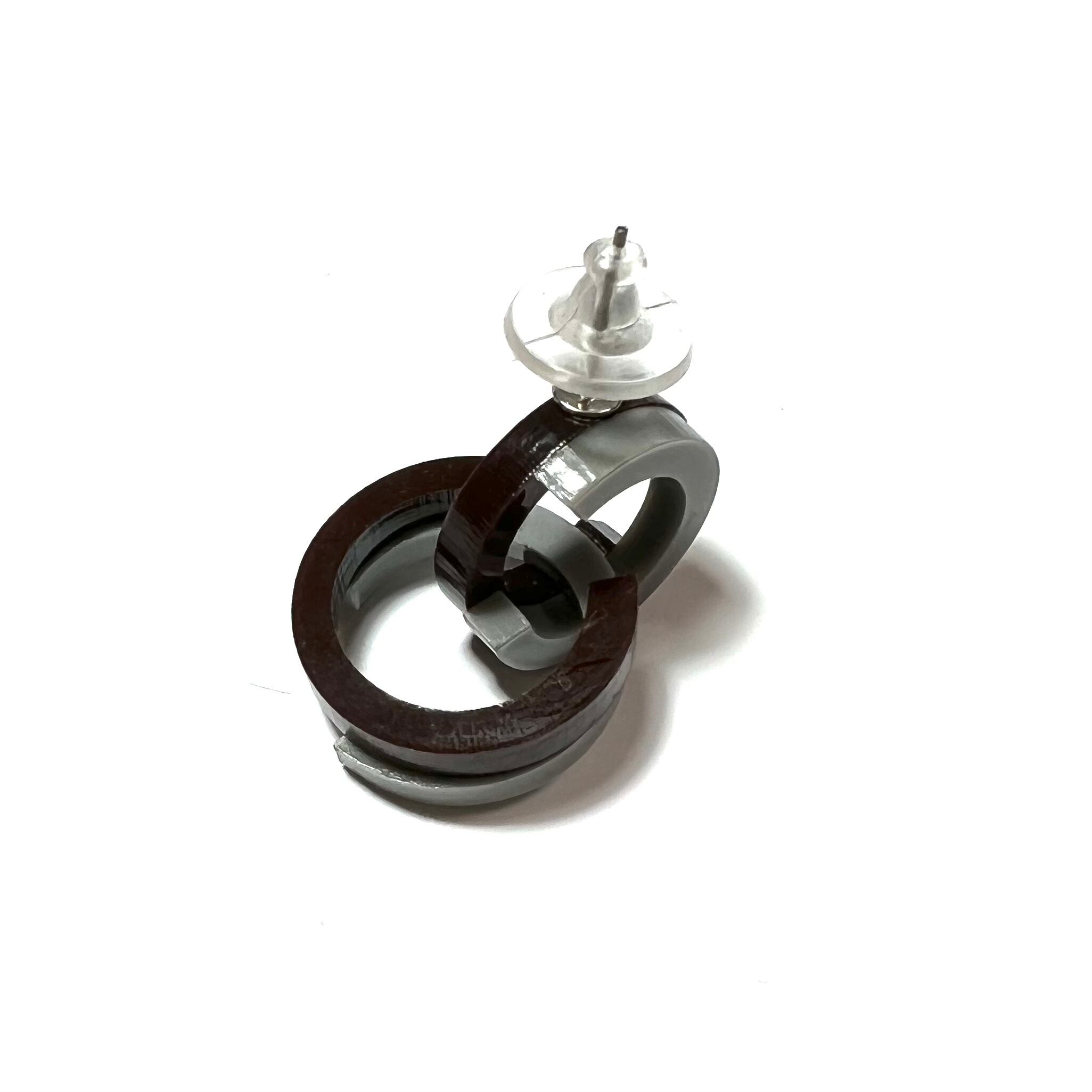 グレー、チョコレートカラー配色のスタッズピアスです。