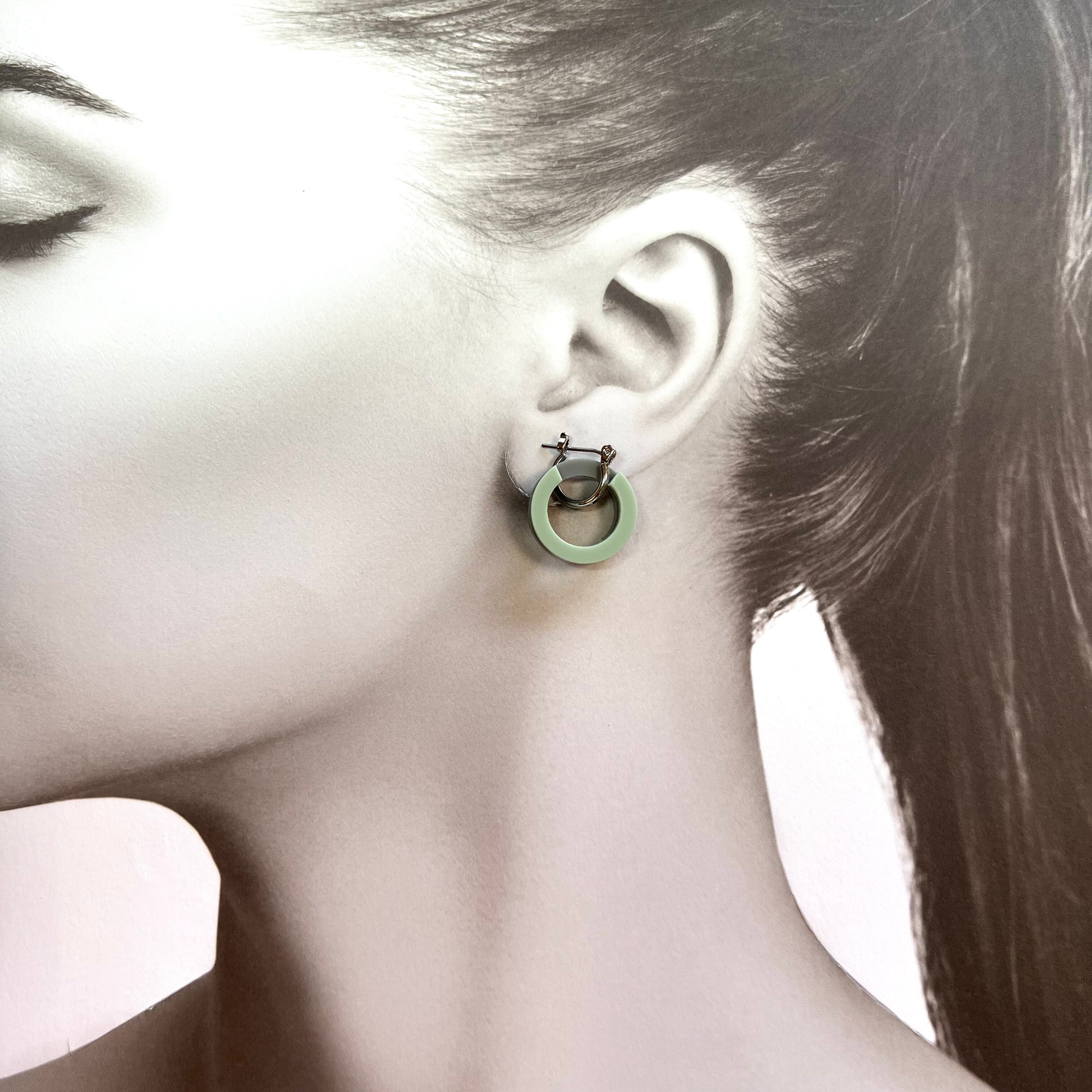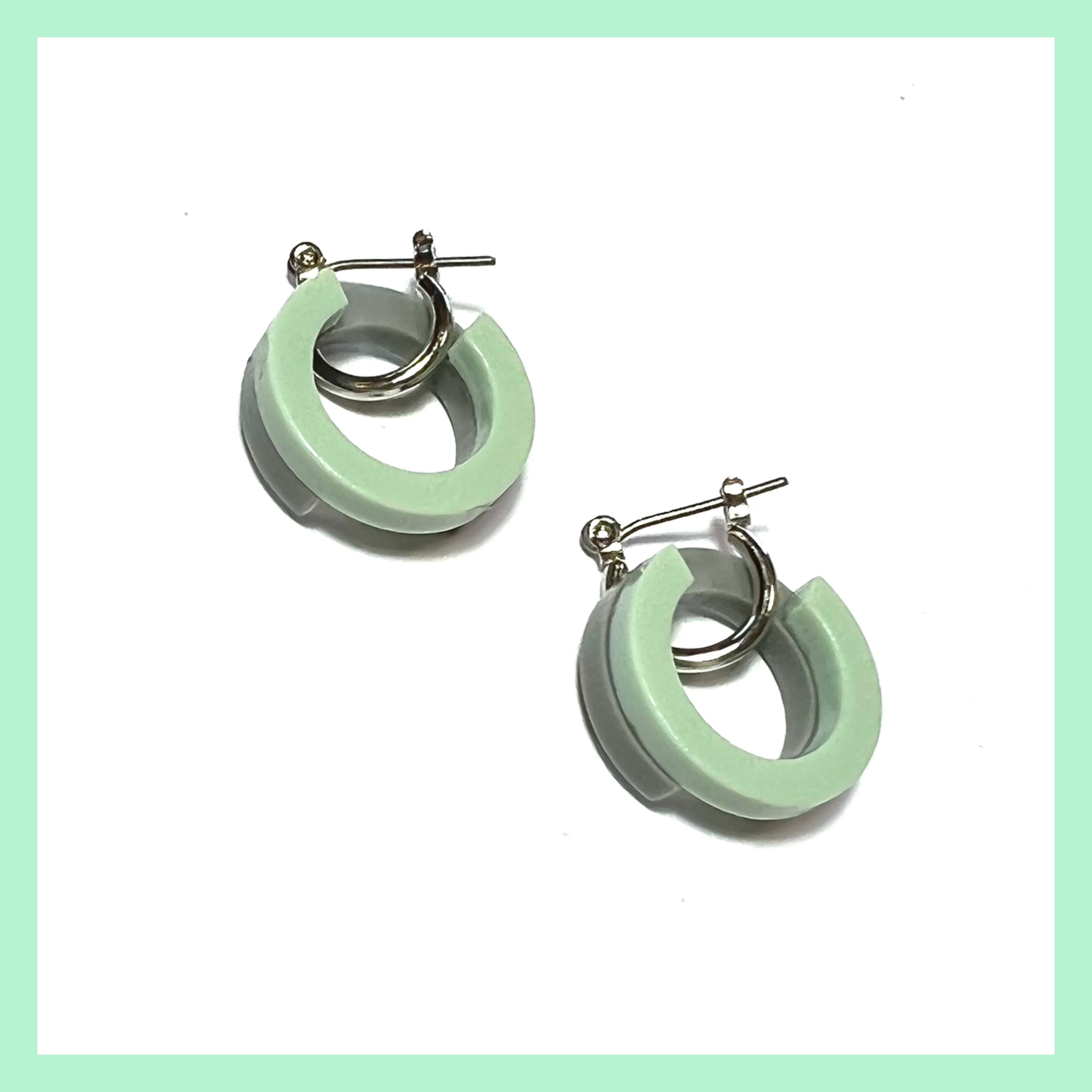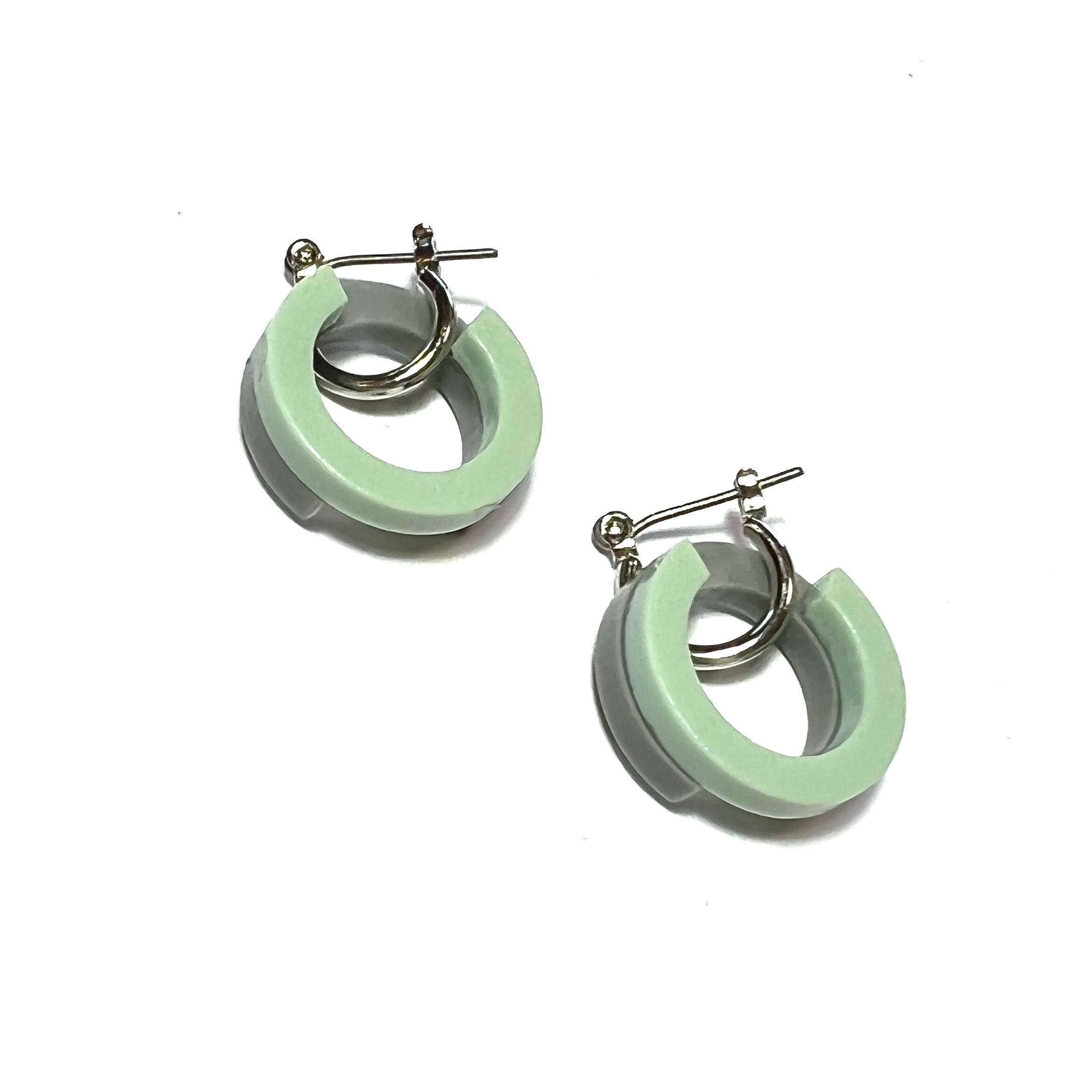 スモーキーグリーン×グレー配色のミニフープピアスです。